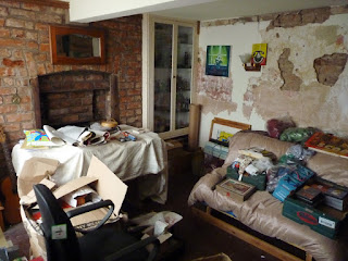 When we bought the cottage a year ago, we hadn't anticipated a renovation job. but once we uncovered all kinds of nasties, that is what it turned into. Losing Andy in January made the prospect of turning it into a liveable (and sadly, maybe saleable) condition seemed overwhelming. The last thing I could think about was DIY. But in this, the most terrible year of my life, I have been blessed with the support of so many good friends and this month I had two batches of visitors to help me wrestle little Bodge Cottage into something habitable. First, Adam and Helen, old and dear work colleagues of Andy's (and mine, too). We stripped, sanded and heat blasted my bedroom until it was down the the bare bones. Now I just have to try my hand at plastering the walls.